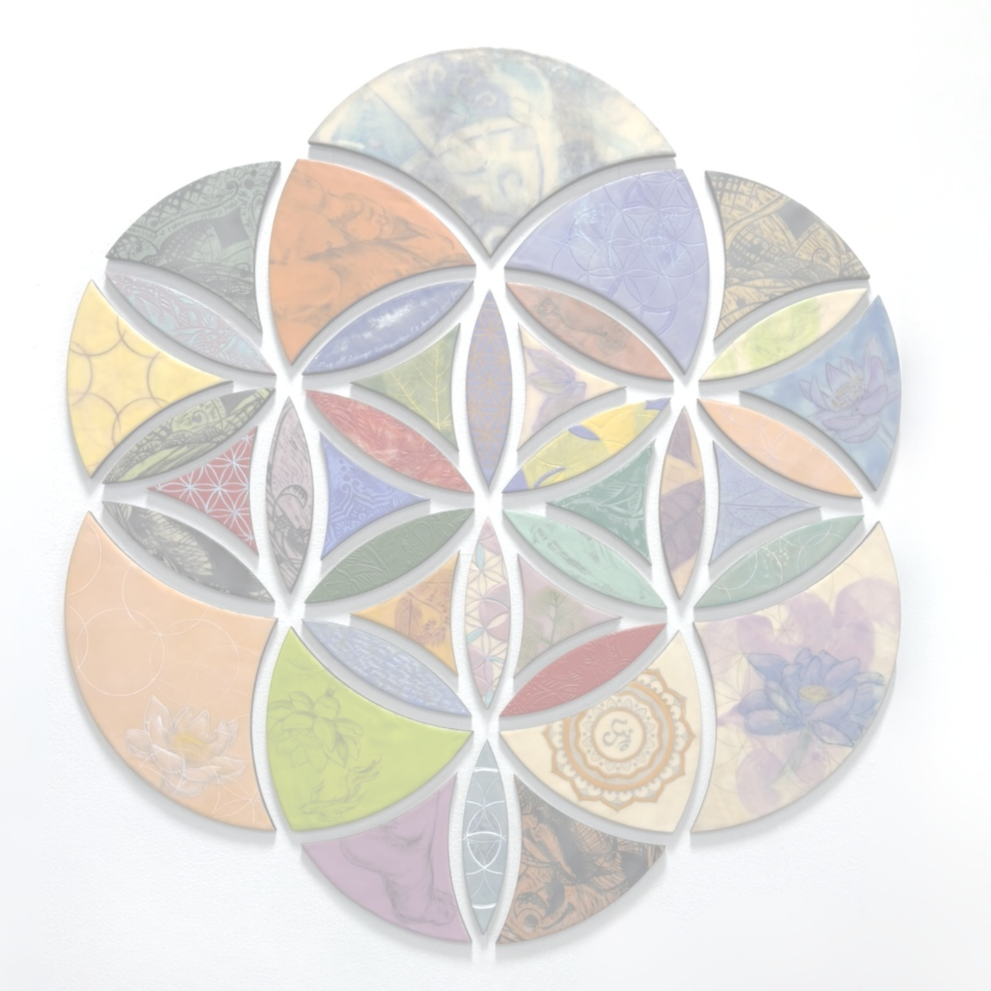 Infusing art with meditation, artist, Nancy Fritz merges lotuses, mantras, mandalas, nature, and sacred geometry onto art, inviting serenity and inner peace.