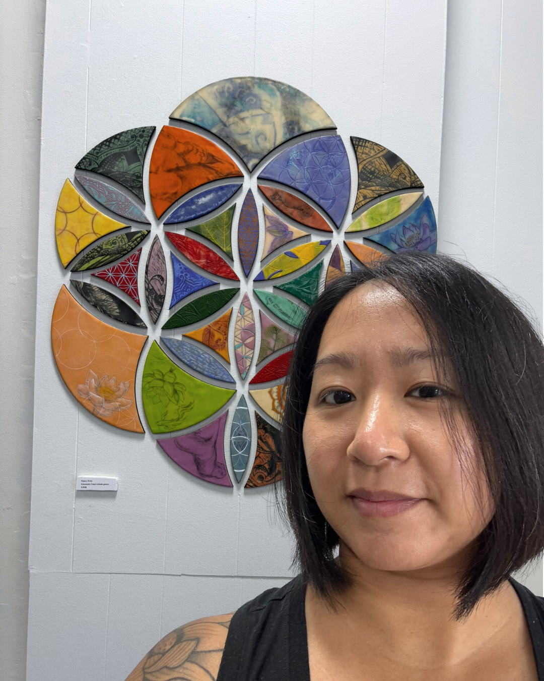 Weave of Life is an evolving modular installation by Nancy Fritz, a Fort Wayne-based artist whose work combines encaustic painting, salvaged materials, and sacred geometry to explore nature, memory, and community connection. The current scope will include 600–700 individually crafted encaustic and mixed media panels, forming a large-scale Flower of Life pattern—a symbol used across cultures to represent wholeness and interconnection.